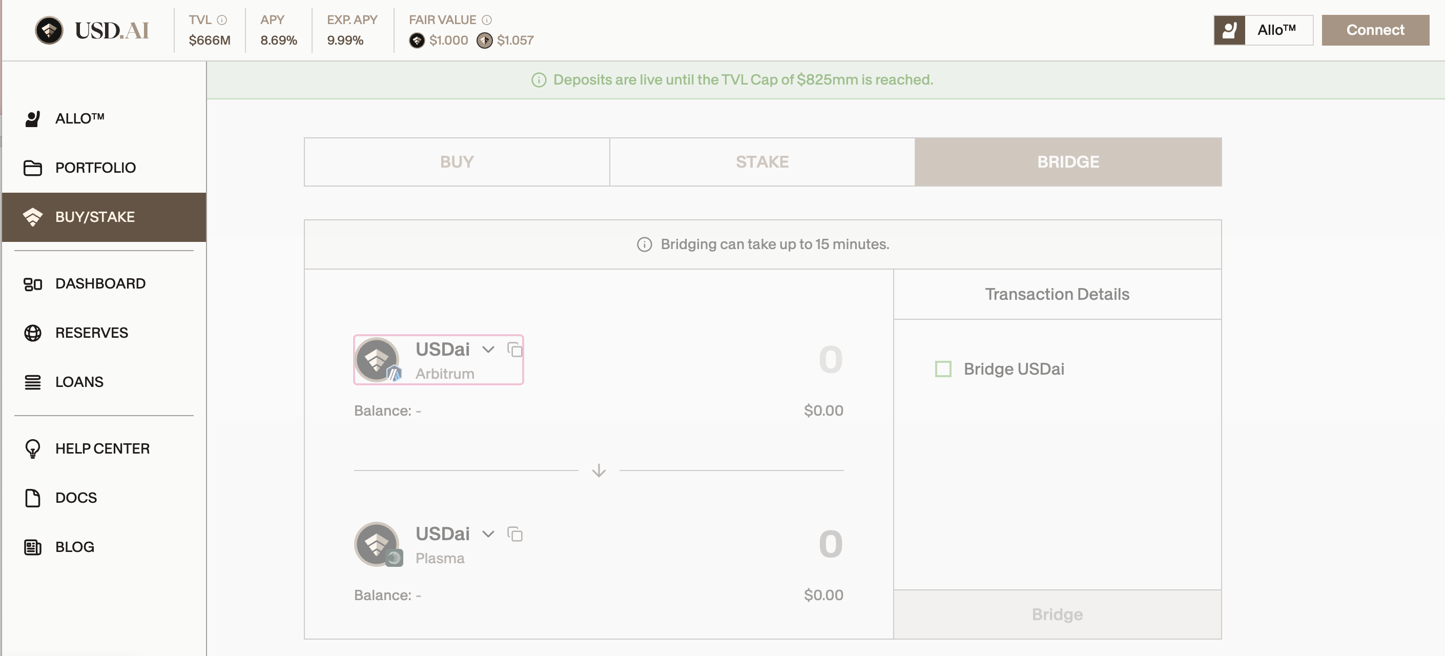 The official bridge is available directly on the USD.AI app:  <https://app.usd.ai/bridge>&#x20;